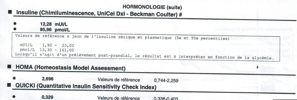 Bref, quand le diagnostic du SOPK tombe, faites évaluer votre résistance à l’insuline est une priorité. Pourquoi ? Parce que si elle est présente, ce sera l’axe de travail principal pour gérer les symptômes liés au SOPK. Si ce n’est pas le cas, il faudra chercher et initier d’autres stratégies.
